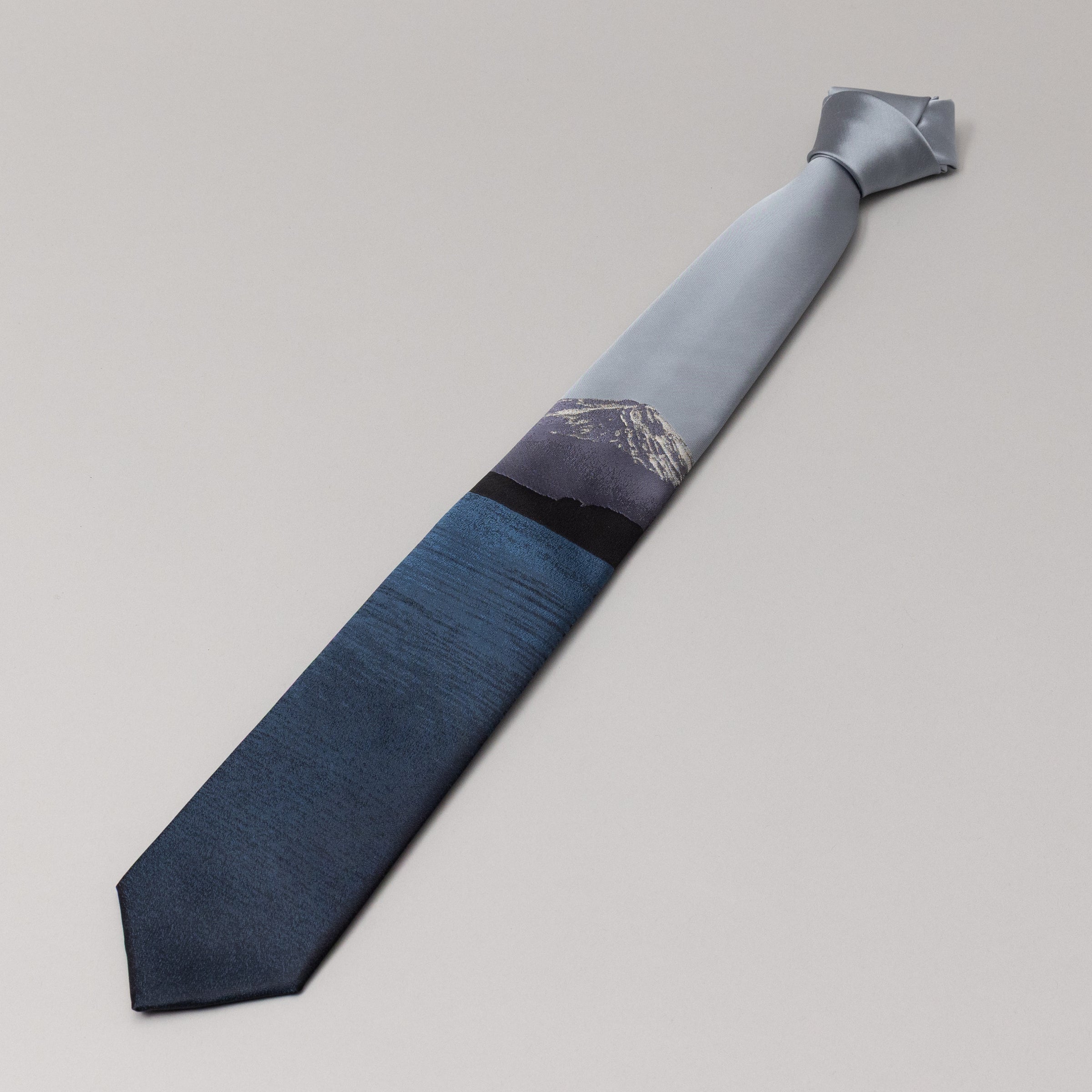 織りの組織の陰影で3種類のリアルな雪山を表現した、存在感のあるネクタイです。京都の丹後ならではの高い技術によって作られています。