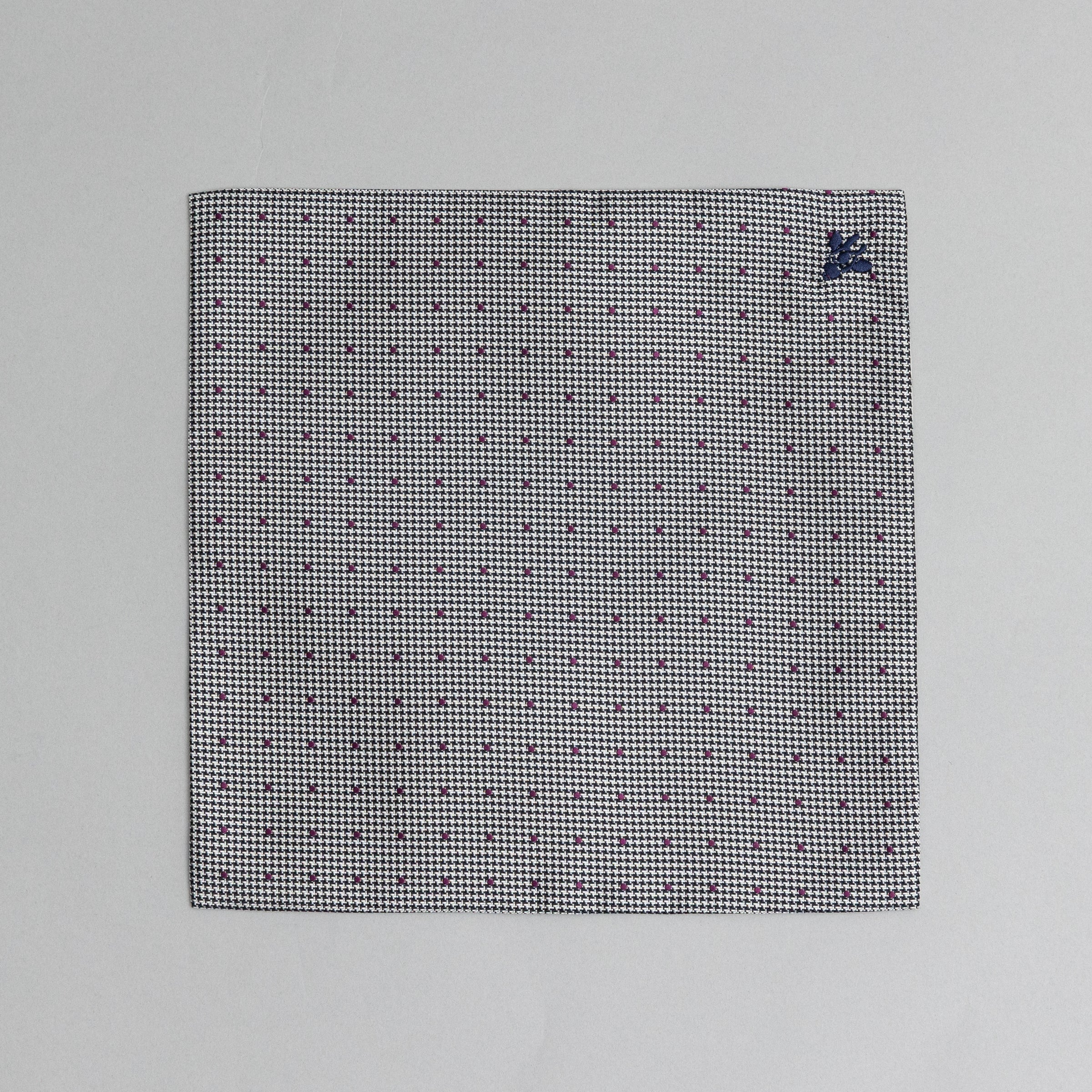 千鳥チェックにイエローのドットが組み合わさった柄のチーフ。
