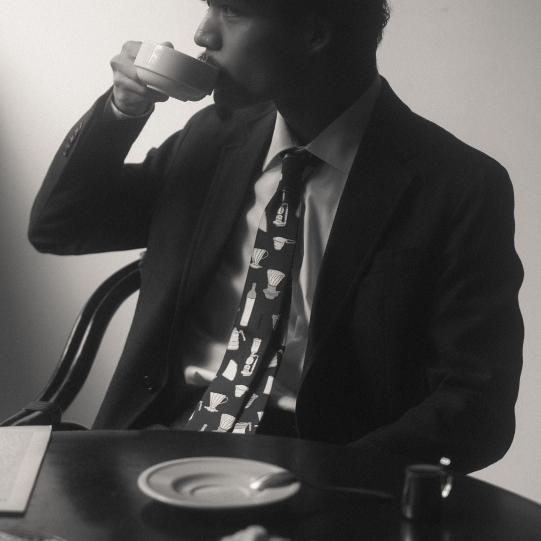 100年以上続くHARIOのモノづくりの中で、人気のコーヒーやティー関連の器具をはじめとして長く愛されているプロダクトをイラストにし、ネクタイの柄として表現しました。お揃いの生地のチーフもありますので、セットでのスタイリングもおすすめです。
